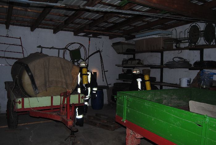 In der Straße "Im Pieter" wurde ein Gebäudebrand angenommen. Mehrere Personen galten als vermisst. Die Feuerwehr Oberbillig war kurze Zeit später am Einsatzort und leitete die ersten Hilfsmaßnahmen ein. Wenig später trafen auch die Kameraden aus den Nachbarorten ein und unterstützten die Arbeiten. Aufgrund einer Rauchgasdurchzündung im Laufe der Rettungsarbeiten, kippte ein Lagerregal und ein Fahrzeuganhänger um. Dieser begrub eine weitere "Person" unter sich. Nachdem auch diese gerettet wurde, hieß es "Übungsende" und die Wehrleute begaben sich zur Nachbesprechung ins Gerätehaus.