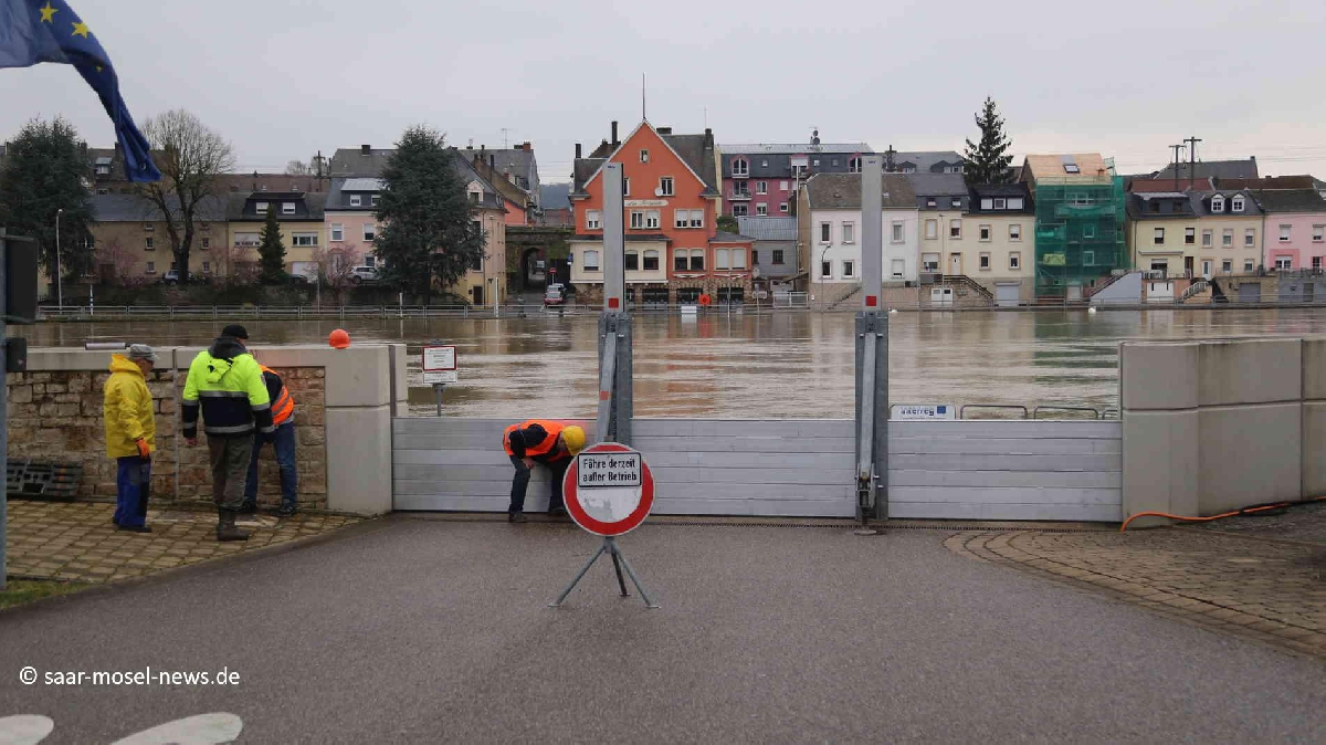 Aufgrund des steigenden Wasserstand am Pegel Wasserbillig und der Abschätzung durch die Hochwasservorhersagezentrale Rheinland-Pfalz in Mainz, wurde das Hochwassertore am Fähranleger, sowie die Durchgänge am Dorfplatz wieder geschlossen.