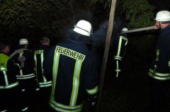 Alarmiert wurde die Feuerwehr Oberbillig am Freitag, 26. Oktober, um 21.40 Uhr zu einem entstehenden Waldbrand in der Bahnstraße 1 in Oberbillig. Die Feuerwehr löschte das ca. 15 – 20 qm große Feuer, welches schon auf die Baumkronen übergegangen war, mittels zwei C-Hohlstrahlrohren. Das Feuer war schnell unter Kontrolle und es wurden noch längere Nachlöscharbeiten gemacht. Die parallel alarmierte Feuerwehr der Stadt Konz konnte wieder abrücken, da Ihr eingreifen nicht erforderlich war. Anwesend an der Einsatzstelle waren der Wehrleiter der VG Konz, die Bundespolizei und die Polizei.