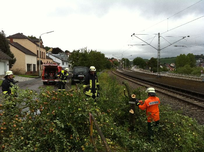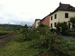 Am Samstag, 6. August, rückte die Feuerwehr Oberbillig zu einer Baumbeiseitigung in die Bahnstraße aus. Während eines Gewitterschauers stürzte ein kleinerer Baum in Höhe des alten Bahnhofes auf die Straße und blockierte die Fahrbahn. Ein Anwohner alarmierte gegen 15.15 Uhr die Feuerwehr, die mit fünf Mann ausrückte um den Baum zu beseitigen. Gegen 16 Uhr war der Einsatz beendet.