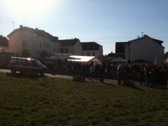 Die Abbauarbeiten verliefen am Mittwoch, 6. April, von 17 bis 22 Uhr. Am Freitag, starteten wir um 14.30 Uhr und beendeten die Arbeiten gegen 22 Uhr. An beiden Tagen waren 15 Mann der Feuerwehr und ebenfalls 15 Mann der freiwilligen Helfer anwesend. Freitags unterstützte uns zudem der Bauhof der Stadt Konz mit LKW und Kran. Zudem waren zwei Gabelstapler, ein Radlader und der Gemeindetraktor mit Frontlader im Einsatz.