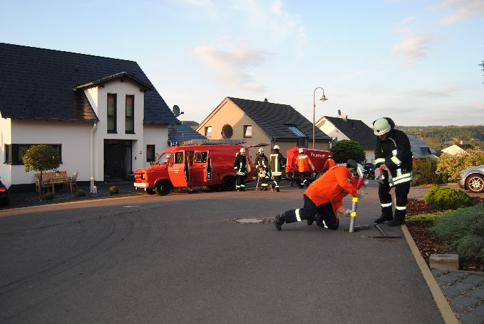 In der Straße "Im Pieter" wurde ein Gebäudebrand angenommen. Mehrere Personen galten als vermisst. Die Feuerwehr Oberbillig war kurze Zeit später am Einsatzort und leitete die ersten Hilfsmaßnahmen ein. Wenig später trafen auch die Kameraden aus den Nachbarorten ein und unterstützten die Arbeiten. Aufgrund einer Rauchgasdurchzündung im Laufe der Rettungsarbeiten, kippte ein Lagerregal und ein Fahrzeuganhänger um. Dieser begrub eine weitere "Person" unter sich. Nachdem auch diese gerettet wurde, hieß es "Übungsende" und die Wehrleute begaben sich zur Nachbesprechung ins Gerätehaus.